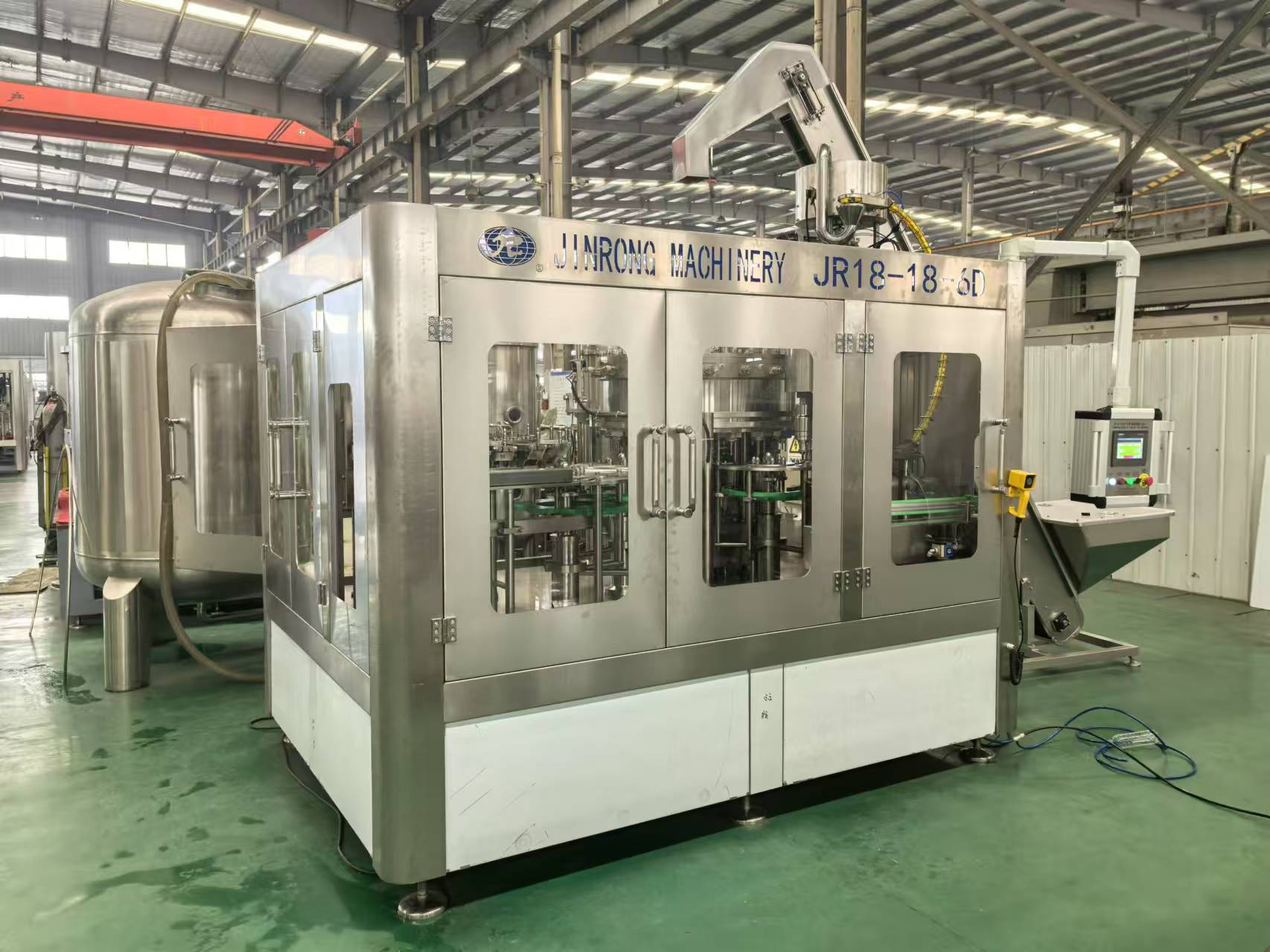 金榮飲料機(jī)械廠家制造供應(yīng)的全套飲料生產(chǎn)線、果汁生產(chǎn)線、碳酸飲料生產(chǎn)線、小瓶礦泉水灌裝設(shè)備、大瓶水生產(chǎn)線、桶裝水生產(chǎn)線、純凈水灌裝機(jī)設(shè)備、瓶裝礦泉水灌裝生產(chǎn)線、易拉罐啤酒灌裝機(jī)等系列產(chǎn)品主要運(yùn)用在純凈水,礦泉水,果汁,茶,熱灌裝飲料,功能飲料,含汽飲料,碳酸飲料,啤酒等液體飲料灌裝生產(chǎn)。其供應(yīng)的灌裝生產(chǎn)線可配套全自動吹瓶機(jī)、水處理設(shè)備、前處理設(shè)備、飲料殺菌設(shè)備、貼標(biāo)機(jī)、包裝機(jī)等相關(guān)配套機(jī)械設(shè)備。金榮多年來的設(shè)備研發(fā)和制造經(jīng)驗(yàn),讓金榮機(jī)械為飲料生產(chǎn)企業(yè)和水廠等提供了穩(wěn)定的全套灌裝生產(chǎn)線設(shè)備。